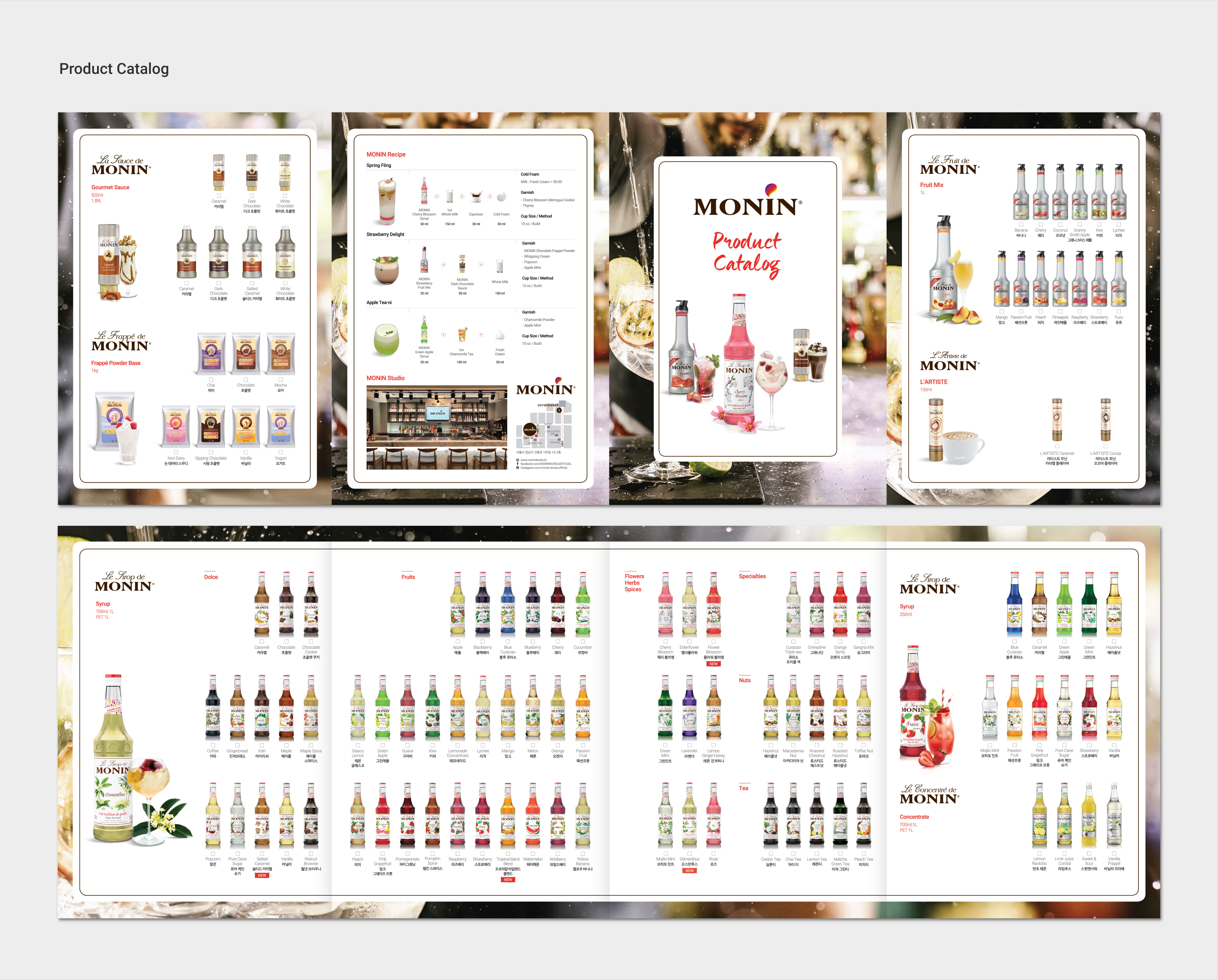 100년이 넘는 역사를 갖고 있는 MONIN은 다양한 맛과 향으로 전세계에서 사랑받는 시럽입니다. 끊임없는 노력과 신뢰를 바탕으로 성장해 온 MONIN의 헤리티지와 정신을 담아내는 데 중점을 두었습니다. 최소한의 요소와 절제된 디자인으로 모든 제작물을 통합적으로 기획 및 관리하였습니다.